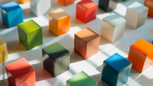 © PNG tree, Obraz premium A collection of colorful wooden blocks arranged in a pattern
