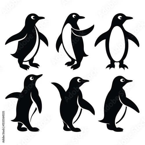 © ForhadGFX, Naklejka premium A collection of cute and playful black and white penguin illustrations on white background