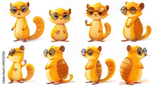 Naklejka premium A collection of cute, animated squirrels in various poses and styles, wearing glasses.