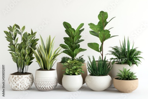 © HO, Obraz premium A collection of 3D-rendered houseplants in stylish ceramic pots.