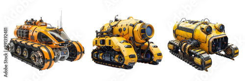 © Maureen, Fototapeta premium A collection of Deep Sea ROVs (Remote Operated Vehicles) designed for underwater exploration, isolated on a transparent background