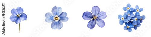 © wanavit, Fototapeta premium A collection of delicate blue flowers showcasing various stages of bloom, perfect for nature-themed projects and designs. transparent background