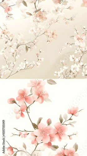 Fototapeta premium A collection of delicate floral patterns in muted tones, set against a light solid color backdrop, perfect for invitations or stationery