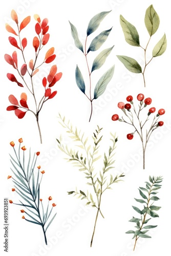 © Fotograf, Naklejka premium A collection of delicate watercolor leaves and branches. Perfect for adding a touch of nature and elegance to your designs and projects