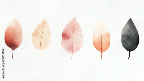 Obraz premium A collection of delicate watercolor leaves in various soft shades, perfect...