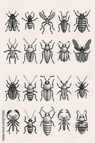 Fototapeta premium A collection of different bug species on a clean white surface, ideal for...