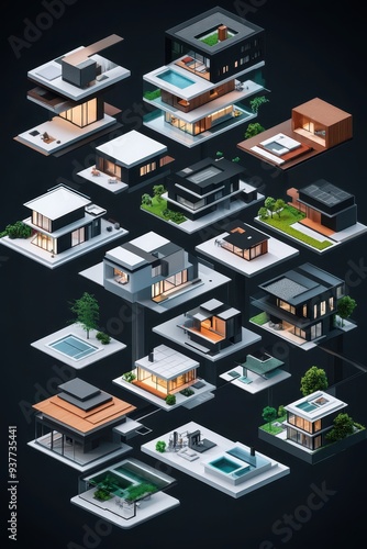 © cff999, Naklejka premium a collection of different types of buildings and houses