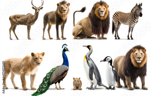 Obraz premium A collection of diverse Asian wild animals comprising birds, mammals,...