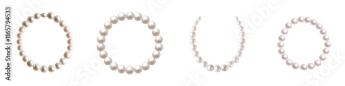 © mangolovemom, Obraz premium A collection of elegant pearl necklaces displayed in varying formations.
