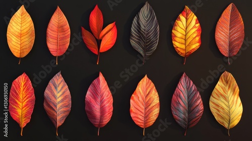 Obraz premium A collection of fall leaves in shades of red, orange, and yellow, vibrant and rich, ultra-detailed, 4k