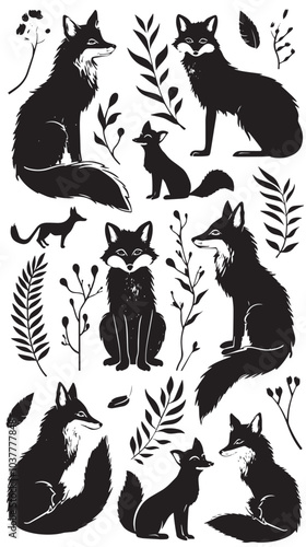 © Vector Stock, Fototapeta premium A collection of fox vector silhouettes , black silhouettes isolated on white background