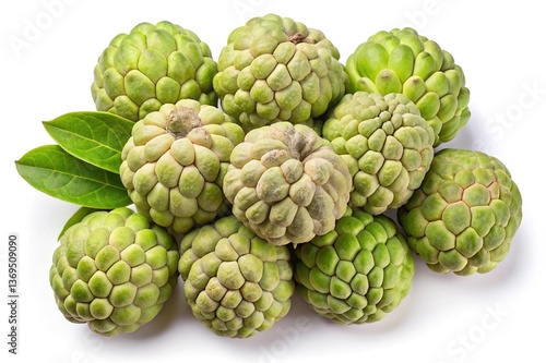 © Md, Fototapeta premium A Collection of Fresh Green Cherimoyas with Lush Leaves