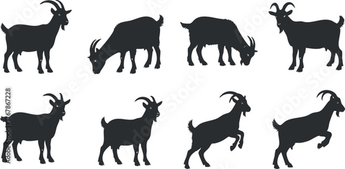 © vadymstock, Naklejka premium A collection of goat silhouettes showcasing various poses and expressions on a white background.