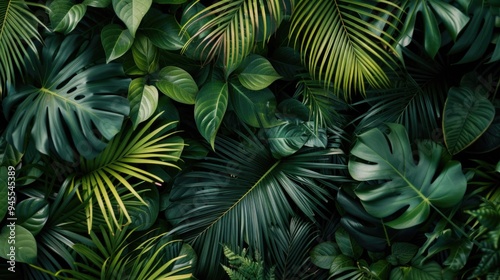 © Fotograf, Fototapeta premium A collection of green leaves stuck to a wall