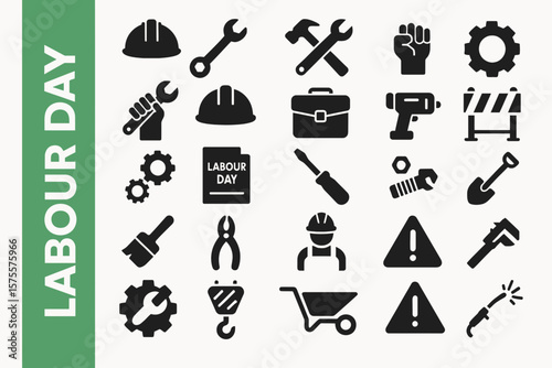 © Ali Haider22, Obraz premium A collection of 25 Labour Day-related editable Black Silhouette Icon