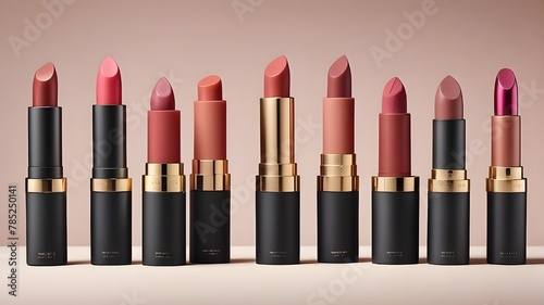 Fototapeta premium A collection of matte lipsticks standing tall in sleek packaging