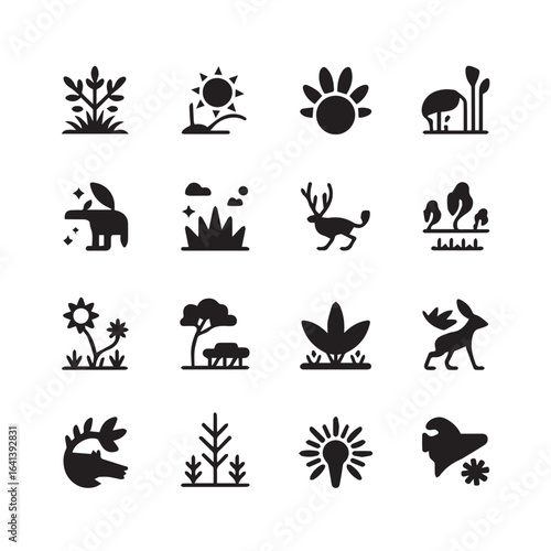 © MdAnisul, Naklejka premium A collection of nature and animal themed glyph icons in black color design