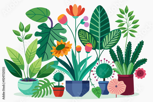 © nurdesign99, Naklejka premium A Collection of Potted Plants and Flowers with Colorful Blooms