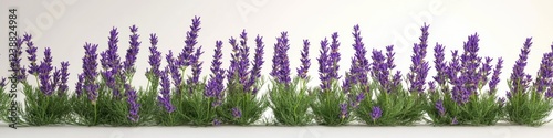Naklejka premium A collection of purple flowers arranged on a white surface, perfect for use...