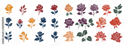 Naklejka premium A collection of rose stencils in different colors and forms, designed with...