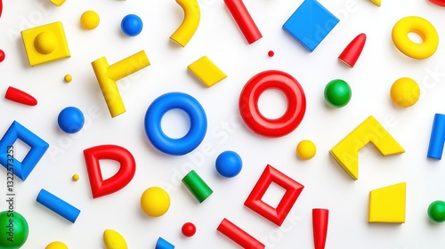 © DekYas, Fototapeta premium A collection of scattered colorful geometric shapes on white background