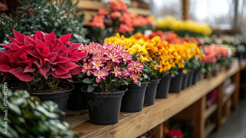 Fototapeta premium A collection of seasonal plants like poinsettias for winter and daffodils for spring