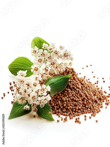 Fototapeta premium A collection of seeds and flowers arranged on a white surface