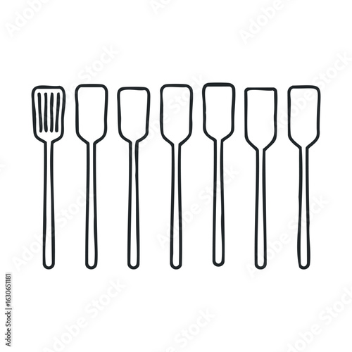 Fototapeta premium A collection of seven different spatula designs arranged neatly
