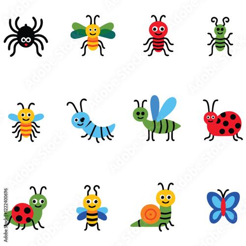 Fototapeta premium A collection of simple, colorful cartoon insects, perfect for children's...