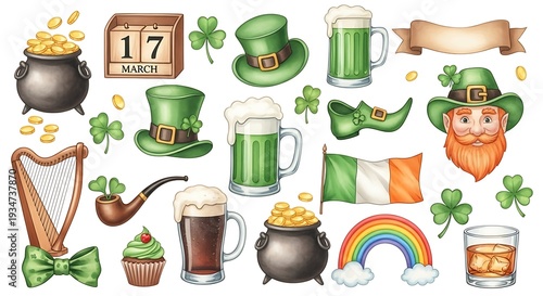 Fototapeta premium A collection of St. Patrick's Day themed illustrations, including symbols and...