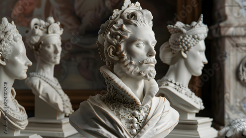 © ninenat, Fototapeta premium A collection of statues of men and women, all wearing crowns and robes