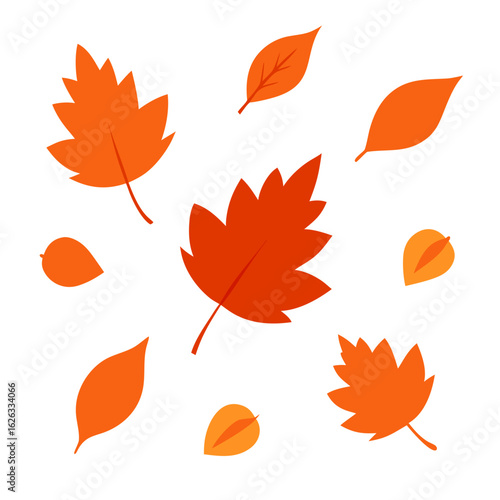 Fototapeta premium A collection of stylized autumn leaves in various orange hues scattered...