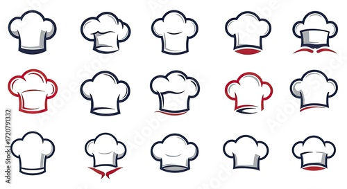 Fototapeta premium A collection of 15 stylized chef hats in various designs and color accents, presented in a grid layout.