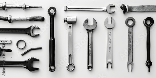 © xartproduction, Obraz premium A collection of tools including wrenches, pliers, and screwdrivers