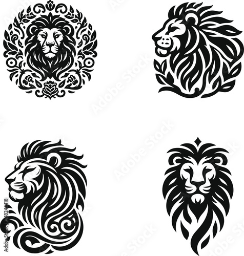 © Zee Editx, Obraz premium A collection of tribal lion tattoo vector illustrations