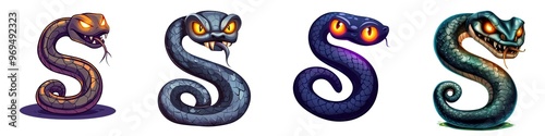 Fototapeta premium A collection of unique snake illustrations featuring vibrant colors and...