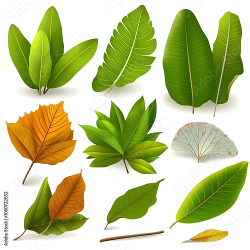 © Bayu, Obraz premium A collection of various leaves showcasing different shapes and colors.