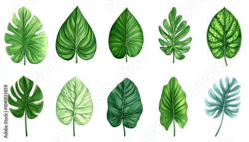 © Anastasiia, Fototapeta premium A collection of various tropical leaves displayed on white background