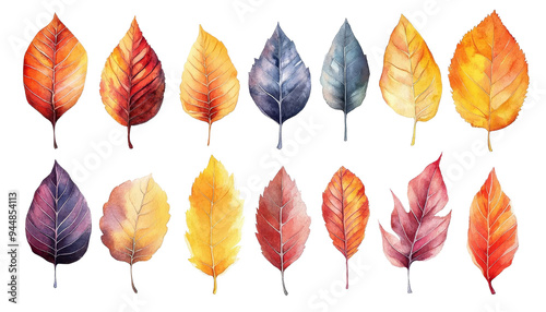 Obraz premium A collection of vibrant autumn leaves in various colors, suitable for...