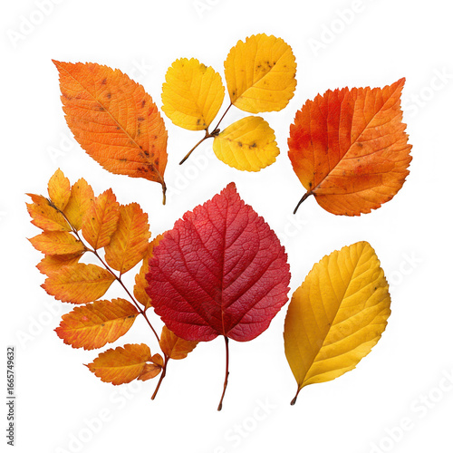 Fototapeta premium A collection of vibrant autumn leaves in various shapes and colors isolated...
