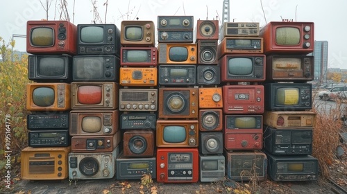 © harryaishi, Obraz premium A collection of vintage televisions arranged in a visually striking display.