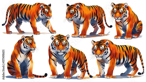 © yanto, Obraz premium A collection of watercolor tiger Illustration