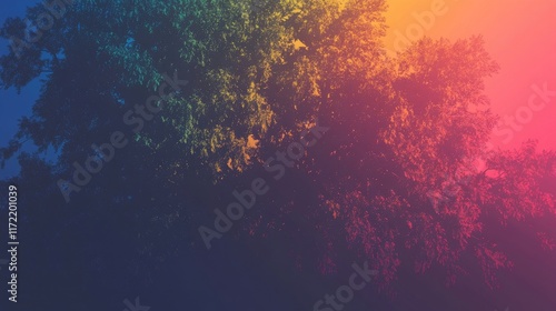 Obraz premium A colorful abstract depiction of a tree against a vibrant gradient background.