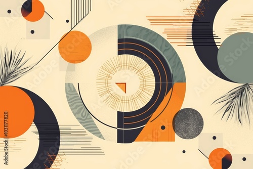 © Space Priest, Obraz premium A colorful abstract design with a circle in the center. Risograph effect, trendy riso style bottom layer