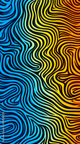 Obraz premium A colorful abstract design with blue and yellow stripes. The blue and yellow stripes are in a zigzag pattern