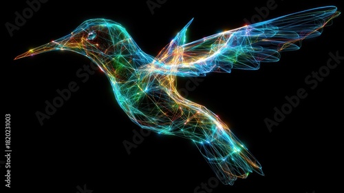 Obraz premium A colorful, abstract hummingbird with glowing lines and lights against a...