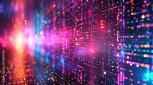 Fototapeta premium A colorful, abstract image of a cityscape with a bright blue sky. The image...