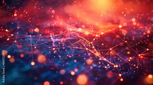 © Charoen, Obraz premium A colorful, abstract image of a web of lines and dots