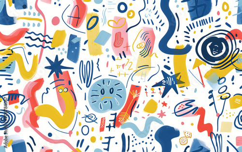 Obraz premium A colorful, abstract painting with many different shapes and lines