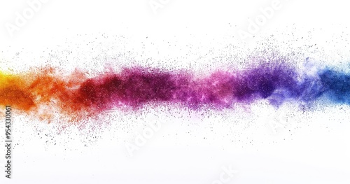 © BersyukurStock, Fototapeta premium A colorful abstract splash of powdery particles on a white background.